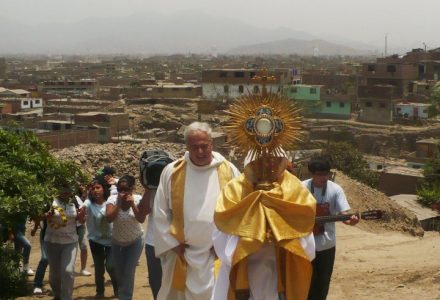 Die Gemeinschaft der Seligpreisungen kam 1988 nach Peru. 1992 hat sie sich in Callao niederge-lassen, um die Pfarrei eines Armenviertels zu betreuen. Ihre wichtigste Aktivität ist die Evangeli-sierung in allen Bereichen: durch die immerwährende Anbetung des Allerheiligsten, durch Katechesen, Weiterbildung für Erwachsene, die Gründung der Bewegung „Herrlichkeit Gottes” sowie den Bau verschiedener Kapellen, um den Armen näher zu kommen. Die Gemeinschaft ist eine Brücke zwischen arm und reich.