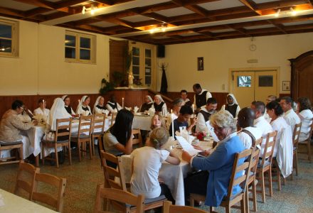 Man wird in einer familiären Atmosphäre des Gebets empfangen, durch ein friedvolles Zusammenleben unter dem Blick der Jungfrau Maria. Wir empfangen unsere Gäste im Rahmen von ein- oder mehrtägigen Einkehrtagen mit Vorträgen, von Besinnungstagen, Pilgerfahrten, einfachen persönlichen Aufenthalten, Examensvorbereitungen oder auch als autonome Gruppen mit oder ohne Begleitung durch Mitglieder der Gemeinschaft.
