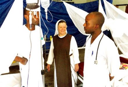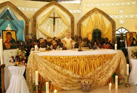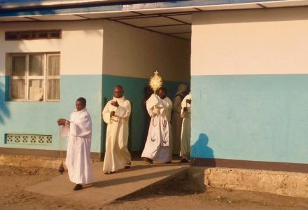 The Community was called here by the local bishop to take charge of the general hospital. Little by little our apostolates have diversified: running the hospital, the St. Damien prayer group and youth mentoring center, an outreach to the marginalized and rejected, a nutrition center (nutrition, education, social support, making palm oil, bakery, etc.), not to mention St. Raphael eye clinic which responds to an urgent need of the population.