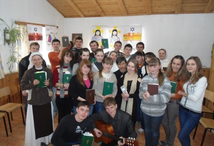 There the Community consists of two consecrated sisters and a married couple who are Friends of the Lamb. They are mainly entrusted with serving the parish: sacristy, choir, preparation to sacraments for children and adults. They make outreach to young people and families, visit the sick, organize bible study groups. They lead singing during Eucharist celebrations in villages (sometimes as far as 100-150 km away), and organize kid camps, and so on …