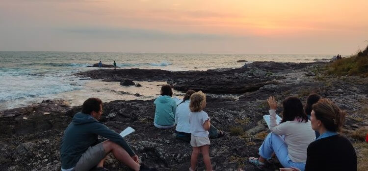 – Retraite : petits enseignements le matin, prière liturgique avec la Communauté, oraison personnelle à la chapelle, dans le parc ou sur les rochers