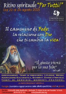 Lasciandoci illuminare dalla Parola di Dio attraverso la meditazione biblica della figura di Abramo, cercheremo di comprendere meglio che la fede come cammino significa rendersi disponibili a seguire Dio senza alcuna pretesa di voler controllare o verificare l’esito del viaggio ma con la fiducia piena che il Signore è fedele alla Sua Parola e che realizzerà la Sua promessa di beatitudine dandoci la Grazia di perseverare nelle diverse prove che dovremo attraversare con Lui: “Farò di te una grande nazione e ti benedirò, renderò grande il tuo nome e possa tu essere una benedizione” (Gen 12,2).