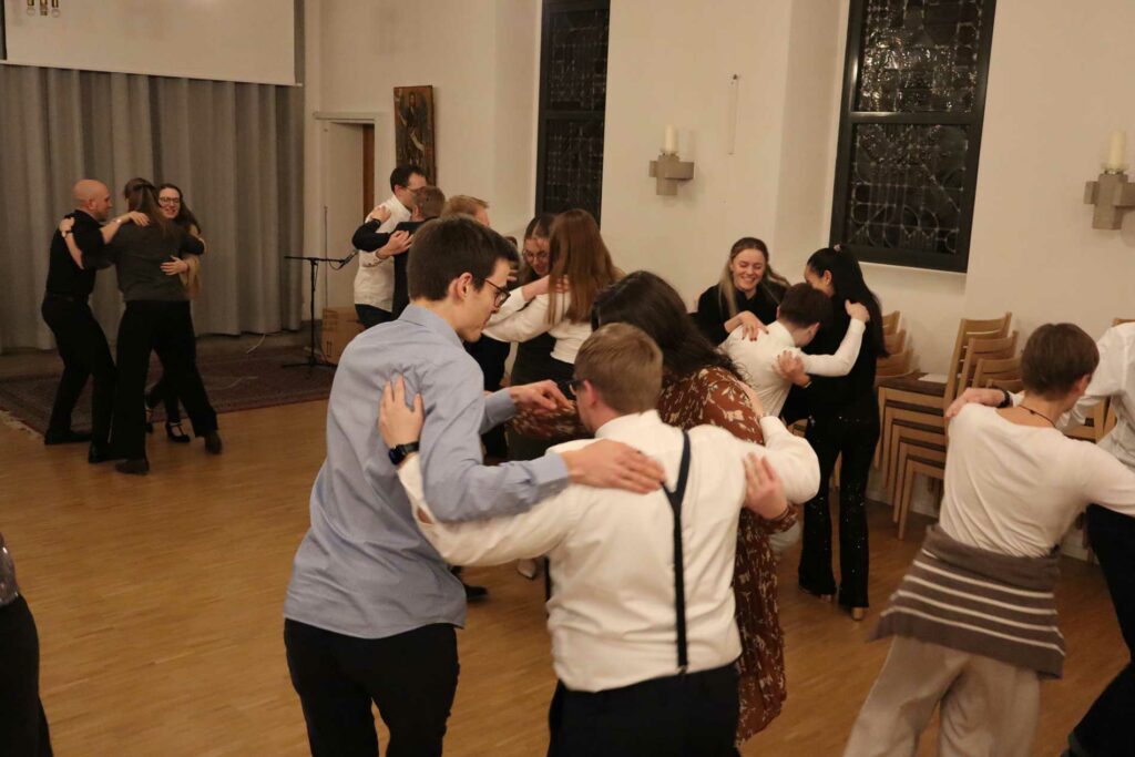 La soirée s’est déroulée en un véritable banquet-réception : repas festif entrecoupé de sketches et chants ; rires et joie étaient au rdv ! Puis, il y a eu des danses d’Israël pour continuer à nous réjouir en Dieu.