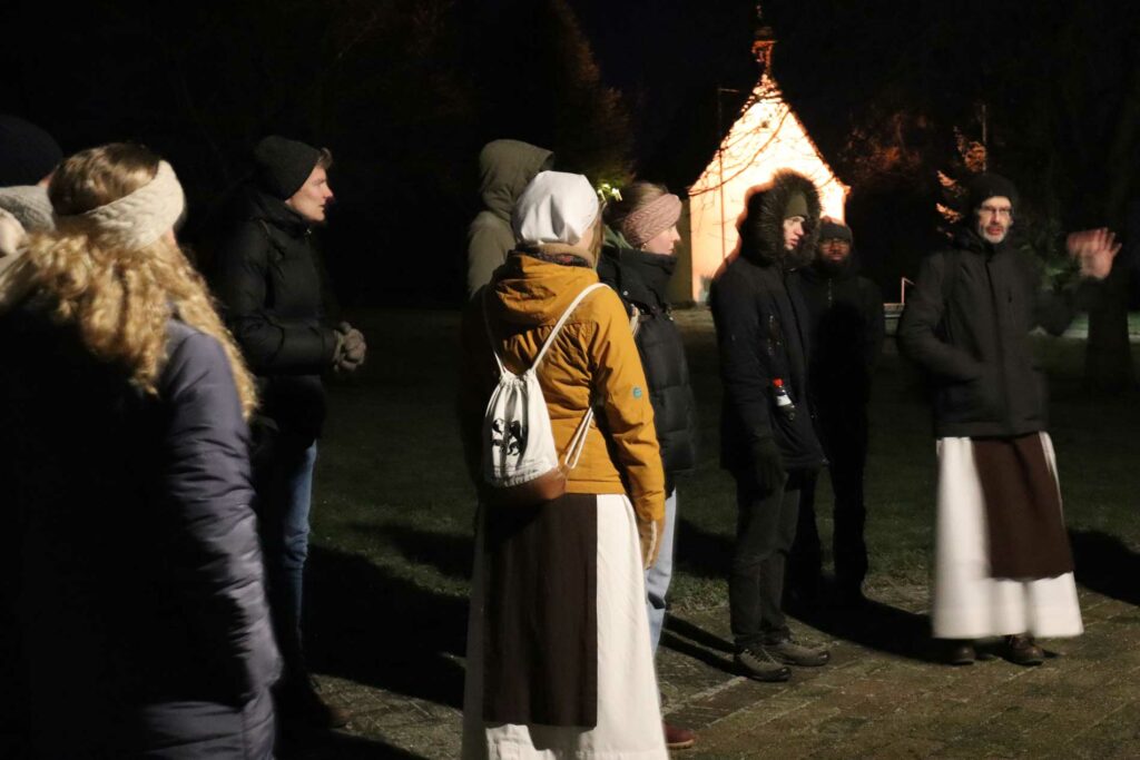 Le 30 décembre au soir, une marche nocturne nous a menés à travers les champs de Paderborn, sous la pleine lune ! C’était magnifique ! Avec nos pique-niques et boissons chaudes, nous étions parés pour marcher et méditer notamment les deux questions que le Fr. Elmar Maria, c.b. avait donné lors de son enseignement sur la présence du Christ. Le cadre était idéal pour descendre en profondeur… dans le silence de la nuit…