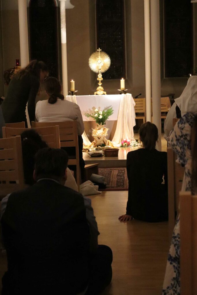C’est dans une chapelle reculée (la chapelle Schönstadt) que nous avons célébré la messe, suivi d’un temps fraternel… réchauffant nos âmes autant que nos corps en cette nuit assez fraîche !
